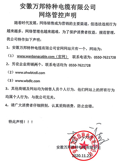 鄭重聲明:安徽萬邦特種電纜有限公司官方網站為:www_wanbangcable_com.jkvng-xkh9.cn,除此之外無任何子網站或合作網站,其余均為假冒偽劣。電話:0550-7621728 13485756353 地 址:安徽省天長市滁州高新技術產業開發區經四路29號